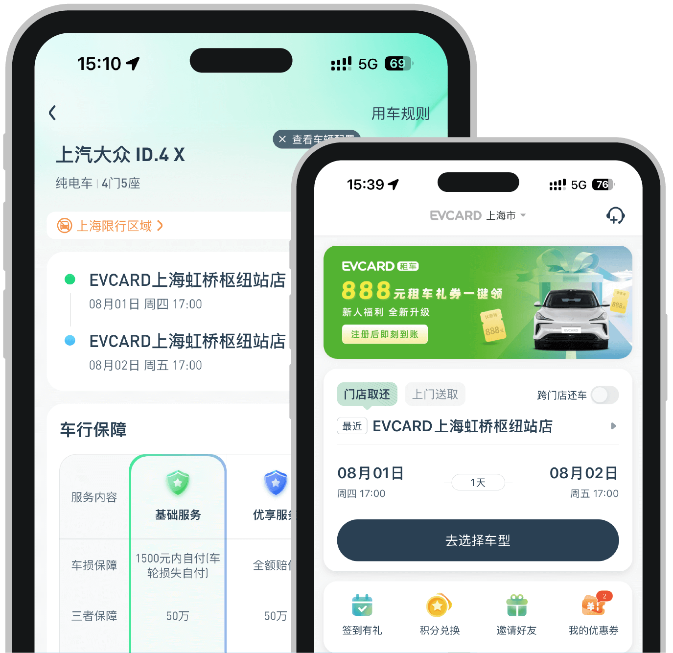 小程序:可通過微信、支付寶平臺搜索“EVCARD租車”小程序進(jìn)行預(yù)定。